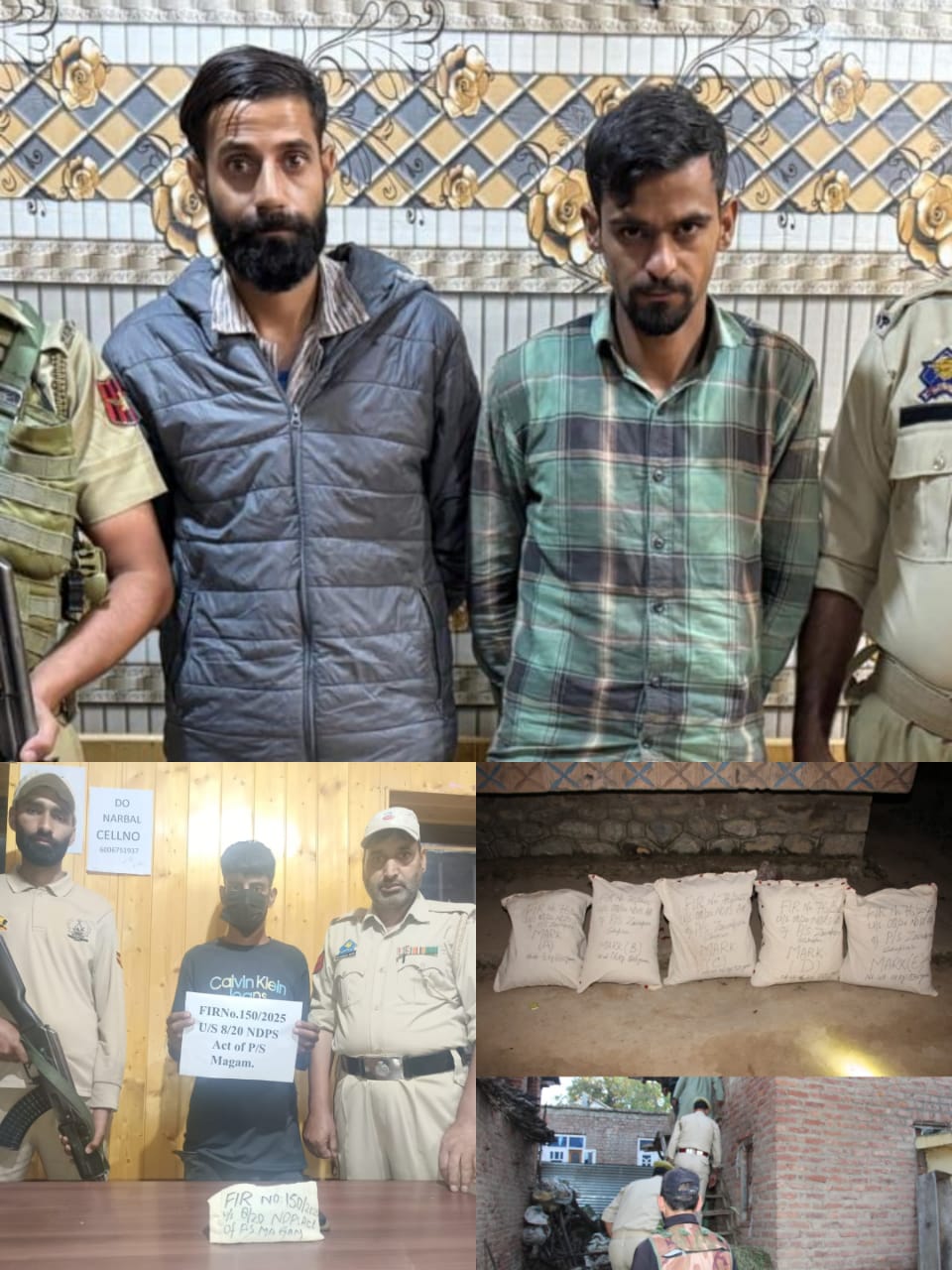 In Shopian, acting on specific information, a police party from PS Zainapora accompanied by the Executive Magistrate 1st Class, raided the specific location at Dachoo Zainapora. During search, 31.8 Kgs of charas like substance was recovered from the residential house/cow shed of Showkat Ahmad Dar son of late Abdul Satar Dar resident of Dachoo Zainapora. Further investigation is going on and efforts are being made to arrest the absconding accused person.