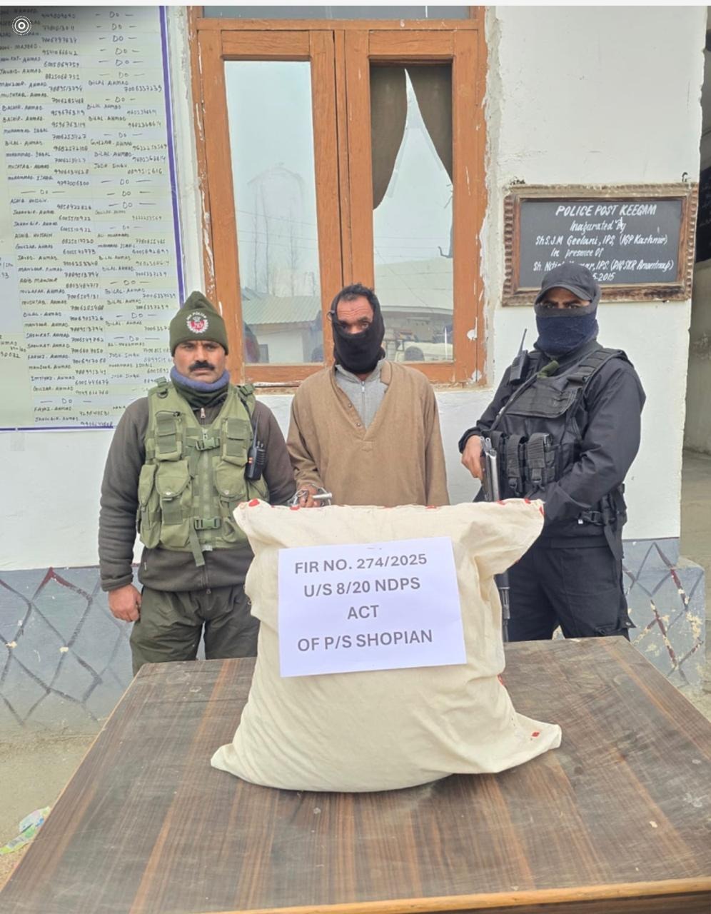 December 20(PTK): As a part of its sustained efforts to eradicate the menace of drugs from society, Police in Shopian have arrested a drug peddler and recovered huge quantity of contraband substance from his possession.