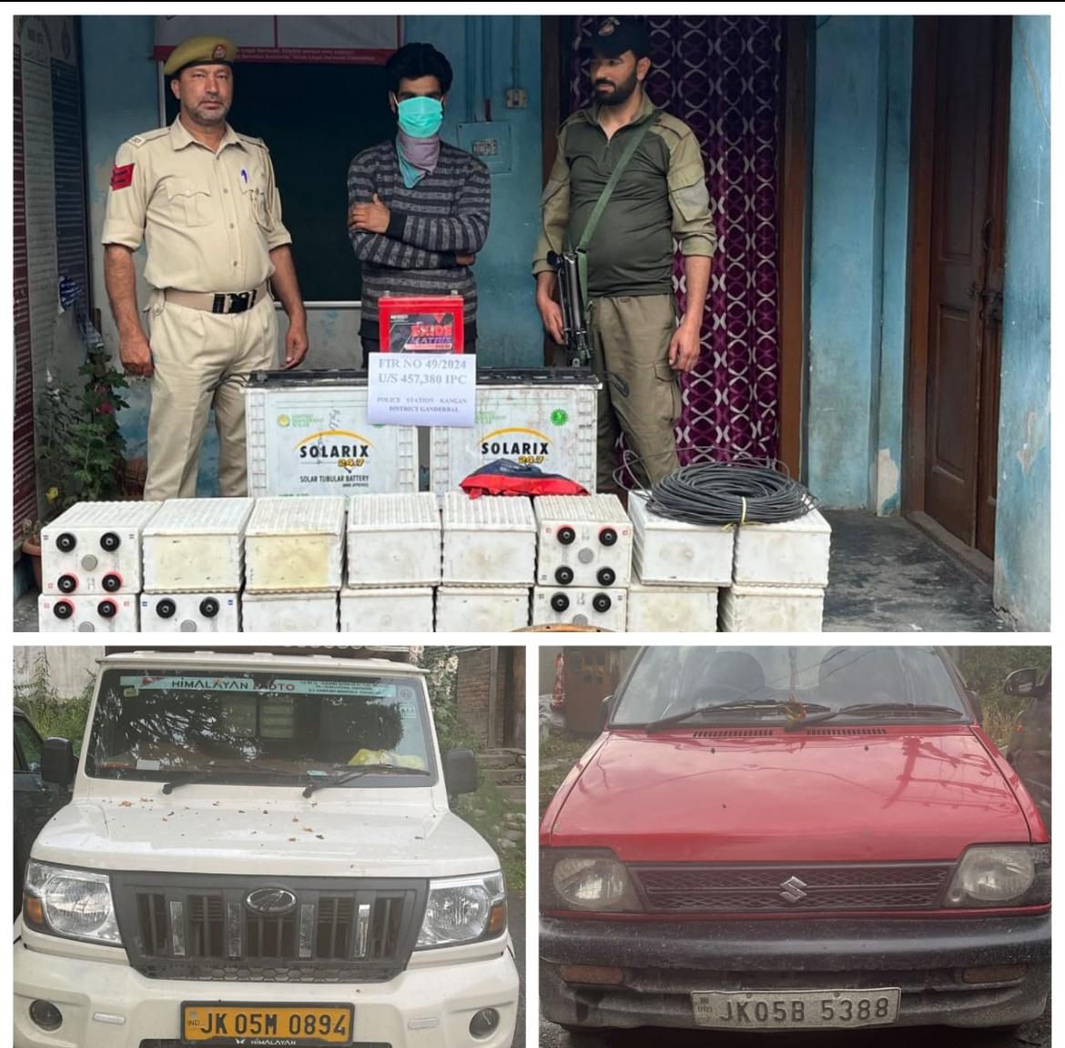 On 15/06/2024, Police Station Kangan received a written compliant from Sub-Divisional Manager BSNL Ganderbal mentioning therein that some unknown persons have stolen 24 No.’s of batteries from BSNL Tower at Mamar during the intervening night of 14/15-06-2024. In this regard, a case FIR No. 49/2024 under relevant sections of law was registered at Police Station Kangan & further investigation was taken up.