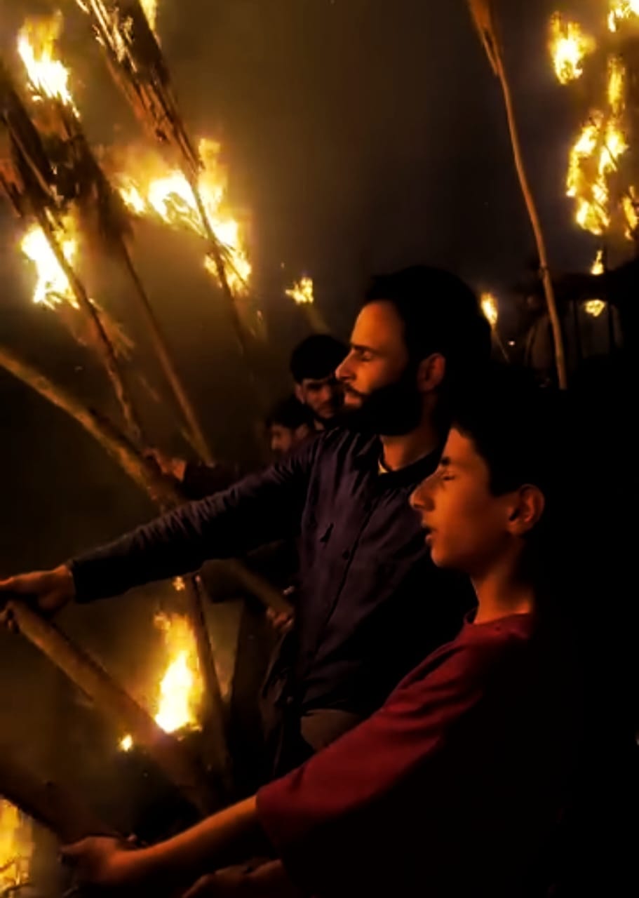 Legend has it that centuries ago, during the reign of Ashushah Badshah, the village of Aishmuqam was besieged by a terrifying demon. In the face of despair, it was a young orphan Gujjar boy named Bumisad who bravely challenged the demon, ultimately vanquishing it after a week-long battle. In commemoration of this triumph of good over evil, the tradition of lighting wooden torches was born—a tradition that endures to this day with undiminished fervor.