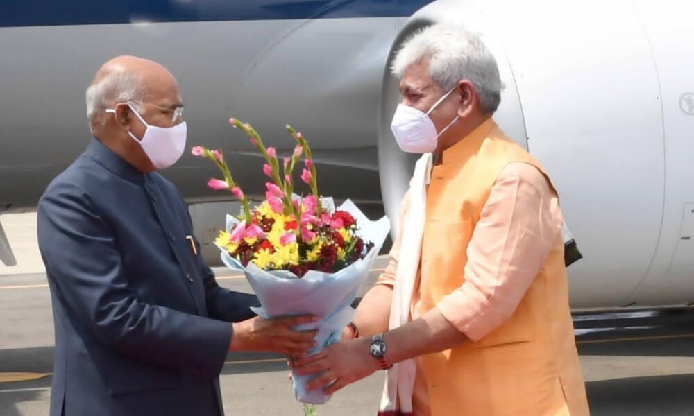 They said Mr. Kovind arrived at the Srinagar airport at 11:15 a.m. and was received by Jammu and Kashmir Lieutenant-Governor Manoj Sinha and senior officers of the police and the civil administration.