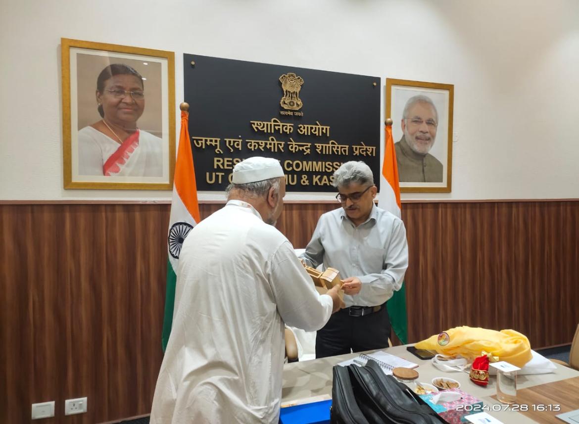 New Delhi, July 29: Head and founder of Save Sharda Committee Kashmir Ravinder Pandita called on Chief secretary Govt of J&K Atal Dulloo in New Delhi yesterday. He extended invitation for Sharda Divas at Teetwal falling on 11 September this year. Besides, h e presented a list of demands to Chief Secretary regarding issues faced by public and tourists at Teetwal. The demands include Extension of NH to Teetwal from Chamkote, expediting construction of Sadhna pass tunnel, providing full body scanner there , upgradation of water supply, electricity and setting up of Yatri Niwas at Teetwal.