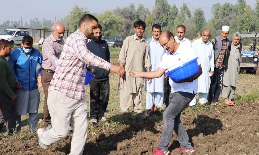 SRINAGAR, OCTOBER 08(PTK): Continuing the valley wide sowing campaign of Oilseed (Mustard) on mission mode, the Director Agriculture Kashmir, Chowdhary Mohammad Iqbal today visited Tailbal and other adjacent areas of district Srinagar.