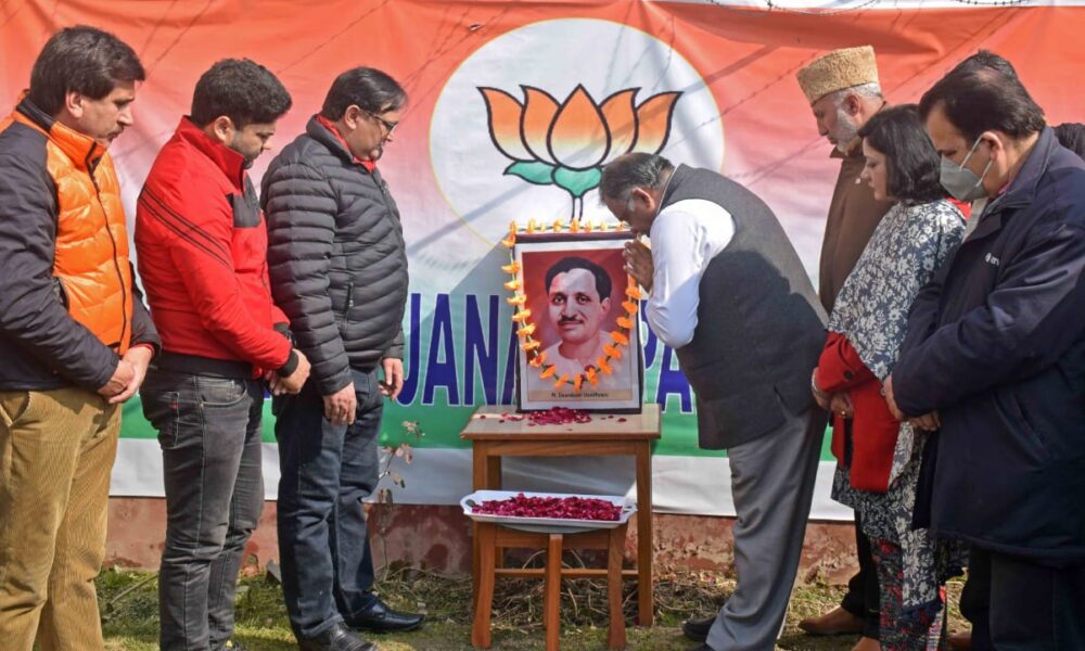 Srinagar, Feb 11 (PTK) BJP Kashmir paid floral tribute to Pt. Deen Dayal Upadhyay, the president of Jana Sangh and the man who gave the philosophy of Antodaya i.e. reaching last poor man in the line or “Ekatamvaad” on his death anniversary here today.
