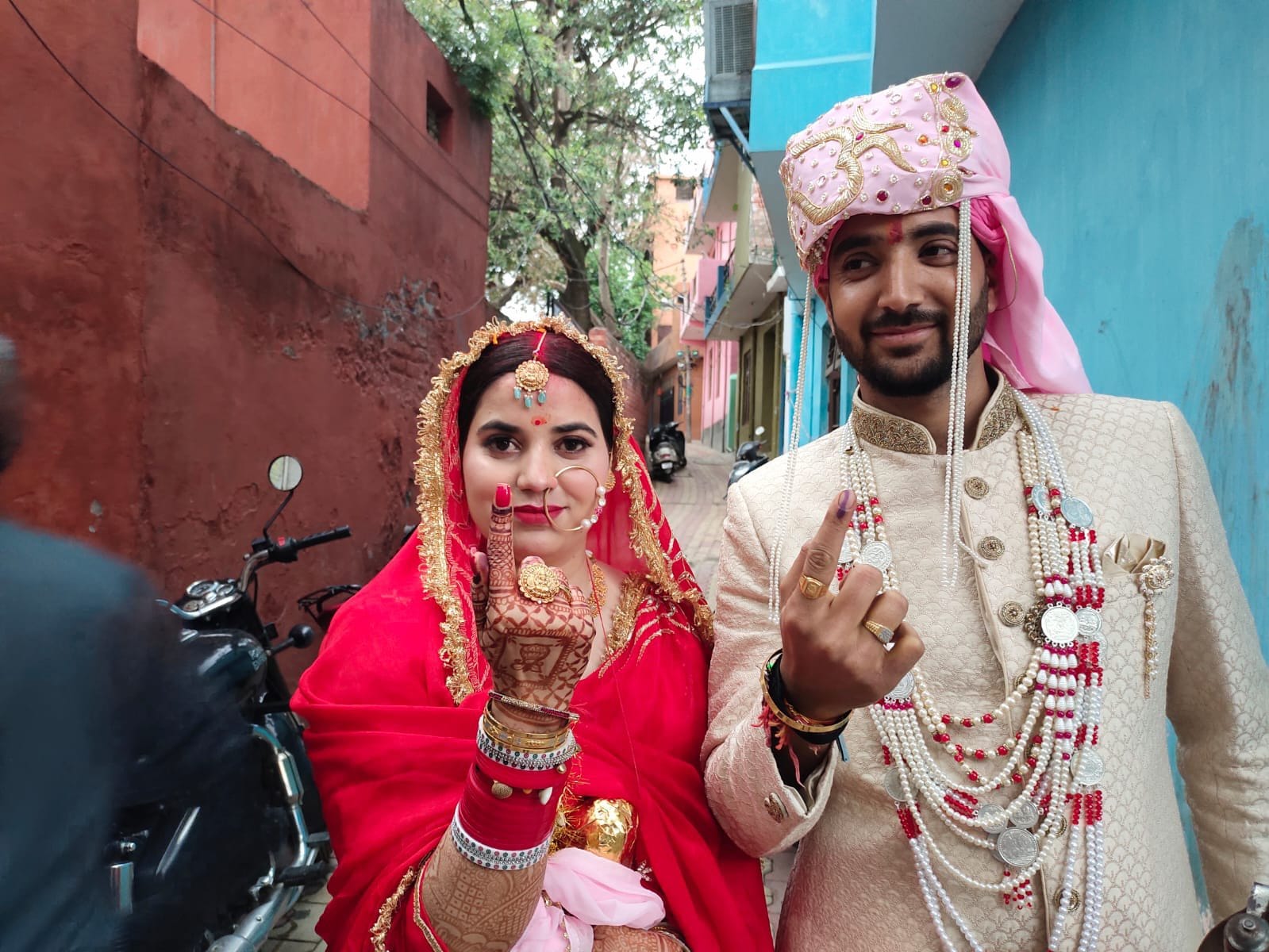 Accompanied by jubilant friends, Kapil Gupta, freshly adorned in wedding attire, marked his vote soon after his marriage, underscoring the importance of exercising one’s franchise. Meanwhile, Sahil and Radhika, another newly married couple, made a symbolic appearance in wedding costumes at a polling station, highlighting the significance of participating in the electoral process.