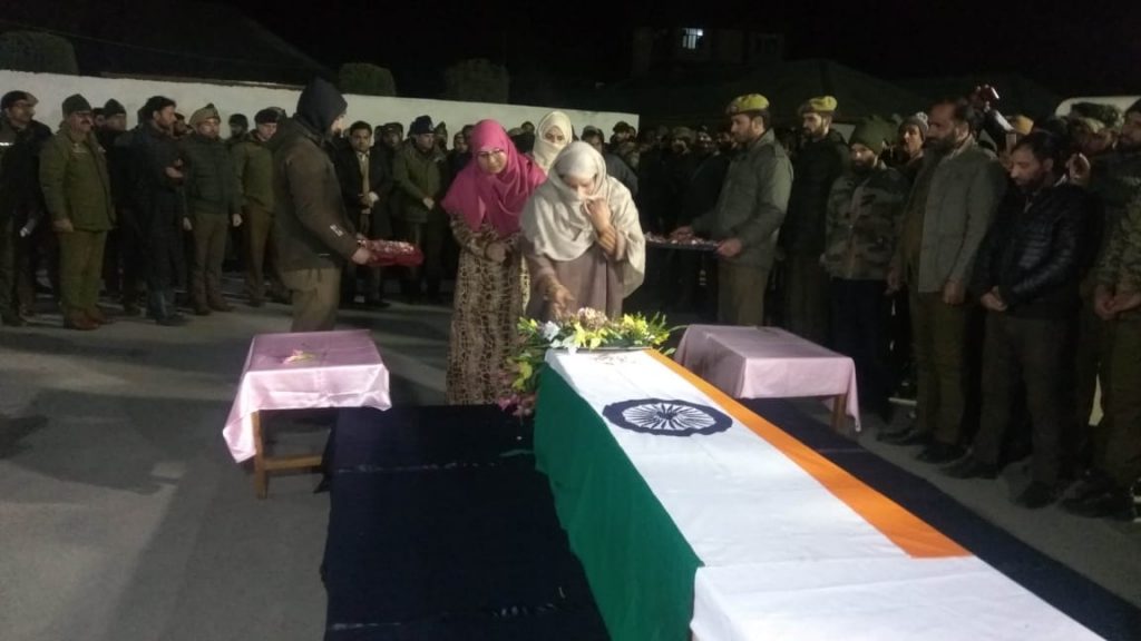 DC Ganderbal Piyush Singla-IAS and Senior Superintendent of Police Ganderbal Shri Khalil Ahmad Poswal-JKPS with other officers of police and civil administration paid rich tributes to martyr & laid floral wreaths on the mortal remains for his supreme sacrifice made in the line of duty.