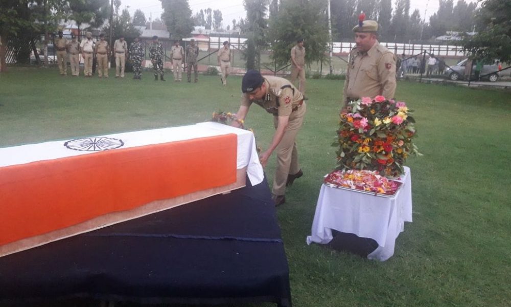 Civil and Police officers led by Inspector General of Police Shri S.P Pani-IPS along with DIG SKR Shri Amit Kumar IPS and District SP Pulwama Shri Mohammad Aslam laid floral wreaths on the mortal remains and paid rich tributes to the martyr.